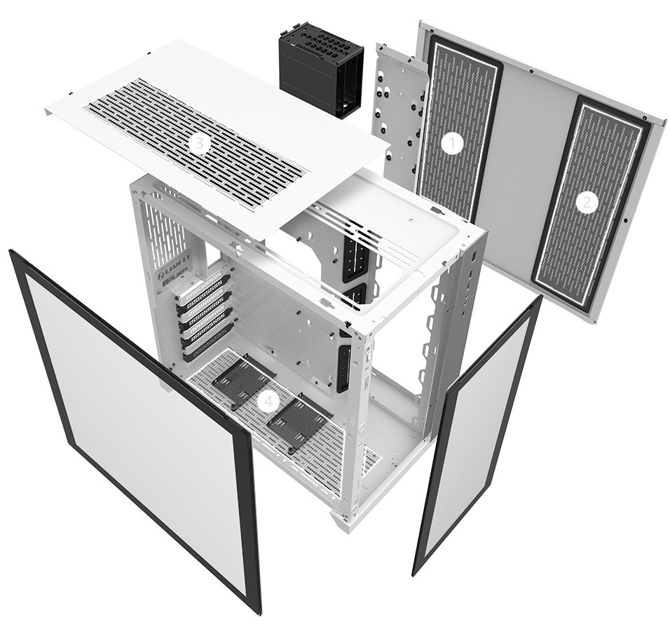 Bottom / top / side panels are all equipped with magnetic dust filters to prevent any dust infiltration