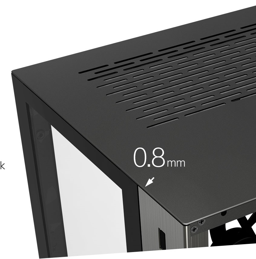 The chassis' body structure is made out of 0.8mm thick SECC; Offer sturdy and strong foundation