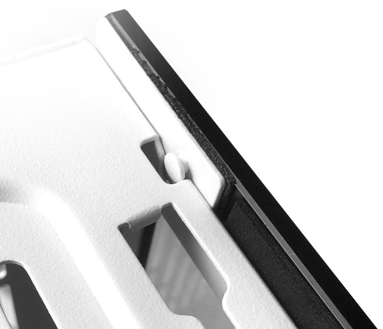 - Counter-angled vents designed to trap noise with minimal airflow resistance